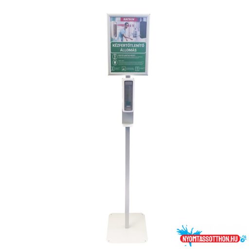 - Az állványhoz tartozó falvédő megakadályozza, hogy a kézfertőtlenítő folyadék mellé cseppenjen.
