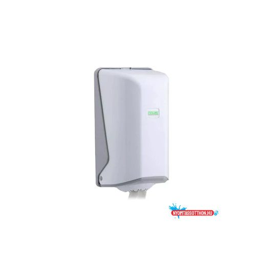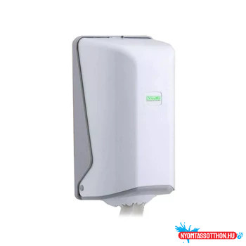 Vialli tekercses kéztörlő adagoló. 14 cm átmérőjű belsőmag adagolású papír kéztörlővel használható. Az adagoló nyílása tépőfogakkal van ellátva, így perforált és perforáció nélküli papírral is használható.
