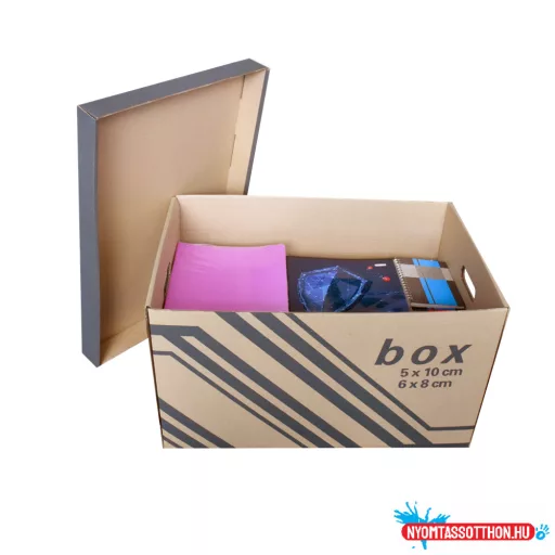 Archiváló konténer karton doboz fedeles 52x35x30cm, külön záródó levehetõ fedéllel Fornax