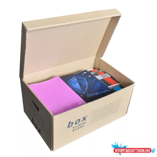 Archíváló konténer karton doboz fedeles 54x36x25cm, felfelé nyíló tetõvel Fornax