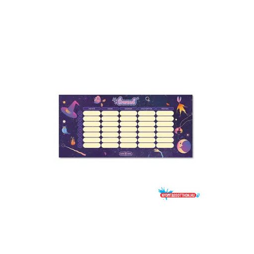 Kétoldalas, magyar nyelvű órarend imádnivaló, boszis mintával alsósoknak - Méret: 232 x 109 mm.