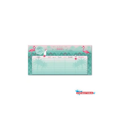 Flamingós mintával díszített, kétoldalas órarend lányoknak.- Méret: 232 x 109 mm