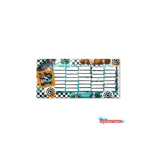 Kétoldalas, magyar nyelvű órarend gördeszkás grafikával alsósoknak és felsősöknek - Méret: 232 x 109 mm.