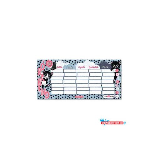 Kétoldalas, magyar nyelvű órarend cicás grafikával alsósoknak és felsősöknek - Méret: 232 x 109 mm.