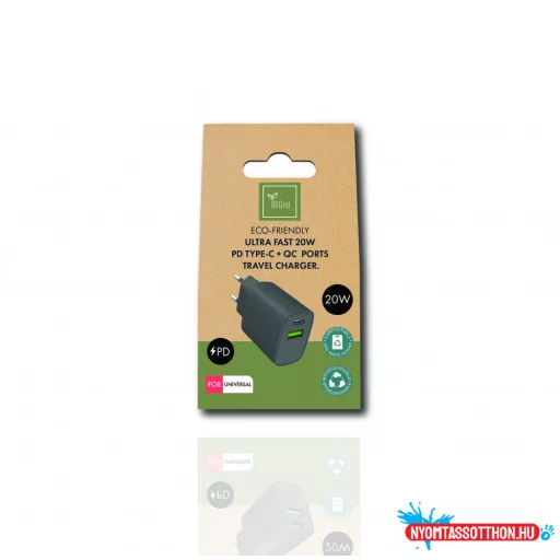 BIOND hálózati töltő USB-C és USB-A 20W * Környezetbarát újrahasznosított anyagokból, minőségi, tartós kábel
