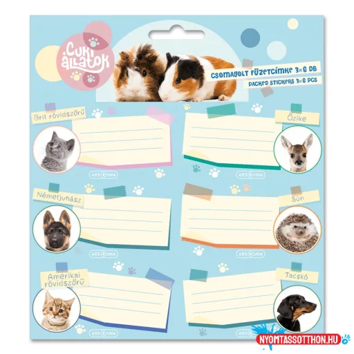 Cuki állatok füzetcímke 18 db (kutya, cica, süni, stb.)