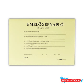Emelőgépnapló 24 lapos A/5 fekvő D.E.938