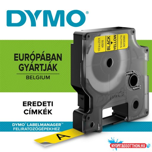 Feliratozógép szalag Dymo D1 S0720580/45018 12mmx7m, ORIGINAL, fekete/sárga