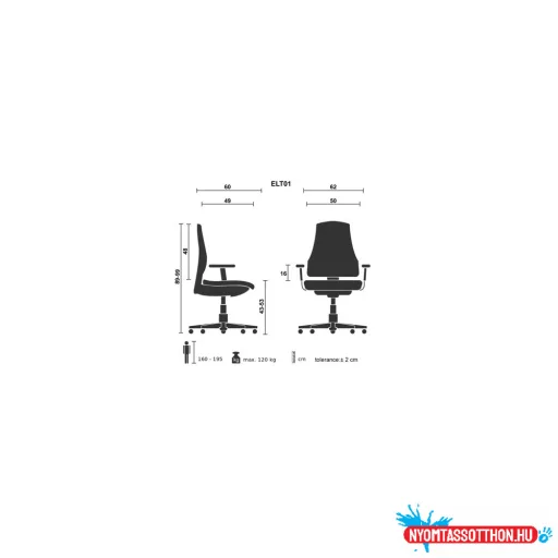Háttámla magassága az üléstől min.: 48cm max.: 48cm