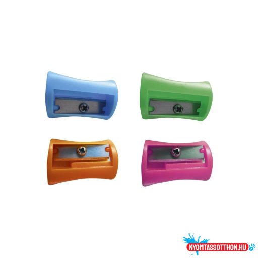 Hegyező műanyag 1 lyukú 36 db / bliszter PVC; 4 szín: narancs, kék, rózsaszín és zöld; műanyag dobozban