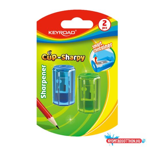 Hegyező 1 lyukú tartályos 2 db/bliszter Keyroad Cup Sharpy vegyes színek