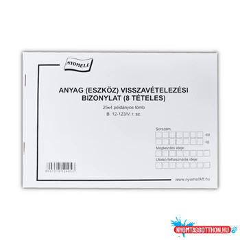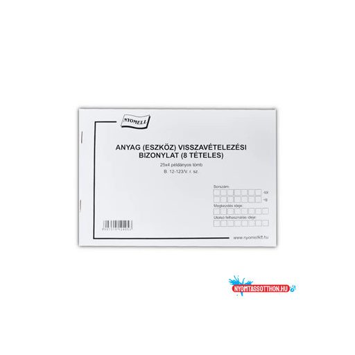 Készlet visszavételezési bizonylat 8 tételes 25x4 lapos tömb A/5 fekvő B.12-123/V Bluering