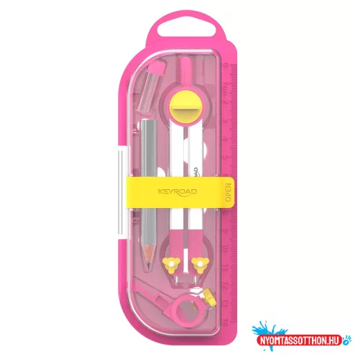 műanyag dobozban, beépített vonalzóval és körsablonnal
