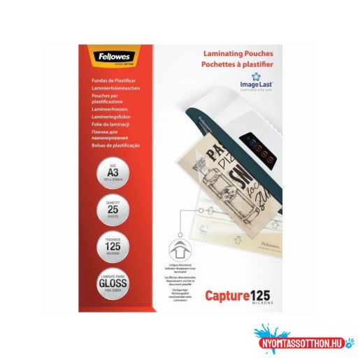 Lamináló fólia, A3, 125 mikron, fényes, 25 db/doboz, Fellowes®