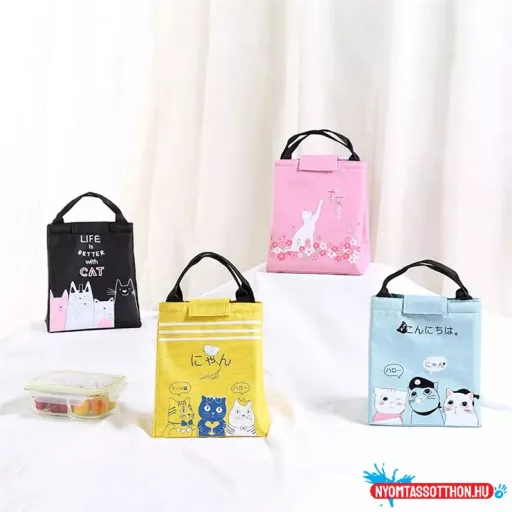 Cuki cicás hőszigetelő uzsonnás táska - nem zipzáros, hanem tépőzáras.