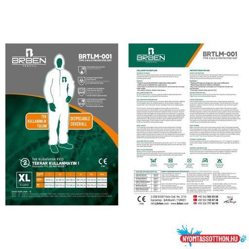 Hosszú ujjú vízlepergető kapucnis, Egészségügyi izolációs védőruha.