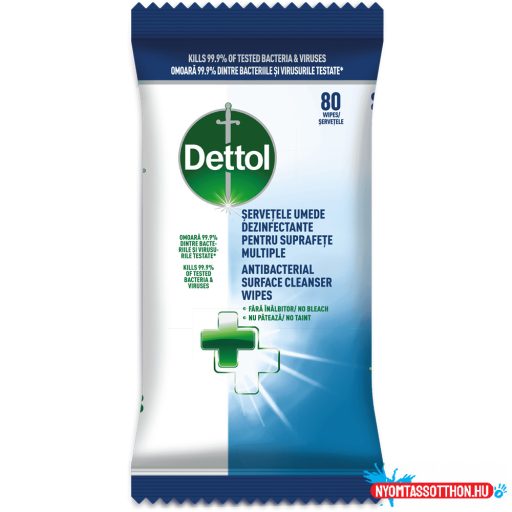 Antibakteriális Felülettisztító kendő Dettol elpusztítja a vizsgált baktériumok és vírusok 99,9%-át*. Eltávolítja az allergéneket. Fehérítőmentes, szín- és illatmentes.