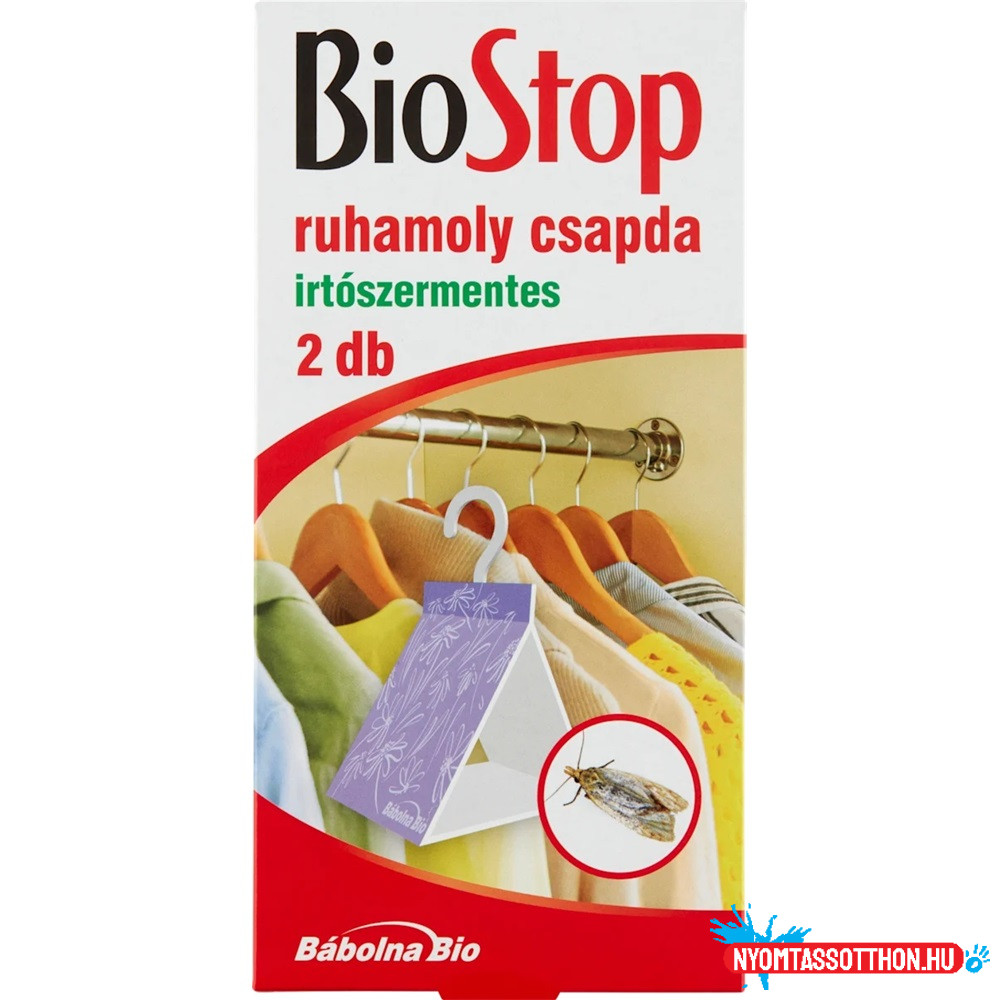 A ruhamolyok okozta kellemetlenségek könnyen, egyszerűen és tartósan megszüntethetők a Biostop ruhamolycsapdák segítségével, akár 10-12 héten keresztül. Az írtószermentes csapda hatékonyan és gyorsan összefogja és elpusztítja a kellemetlen betolakodókat. Szex feromont tartalmának köszönhetően akár 10-12 héten keresztül képes csökkenteni a kártevők szaporodását. Hosszantartó biztonságot nyújt a ruhamolyokkal szemben, miközben környezetbarát tulajdonságának köszönhetően nem jelent veszélyt környezetére.