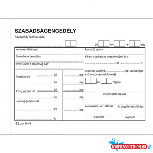 Szabadságengedély 50x2lapos B.18-49/V Bluering®