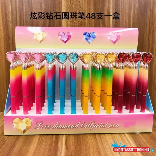 Szivecskés - kristályos színes testű golyóstoll, 0.5mm
