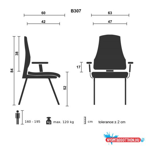 Háttámla magassága az üléstől min.: 38cm max.: 38cm