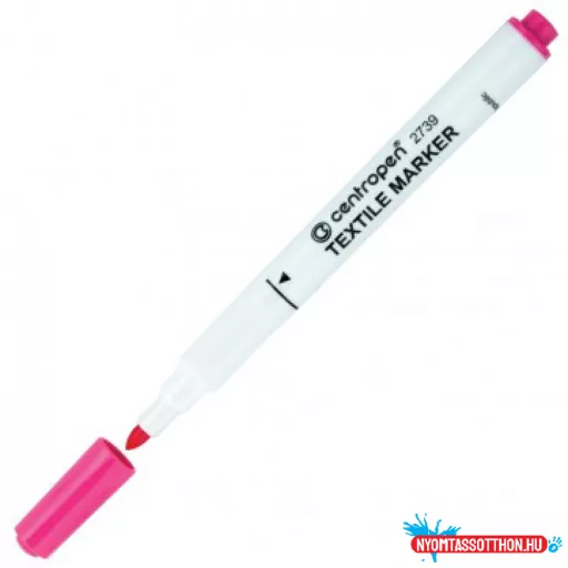 Textiliák pl.: pamut, selyem, vászon stb., egyéb ruházat pl.: tornacipő, póló, táska stb. dekorálására, írására, jelölésére alkalmas marker. Kerek heggyel, vízbázisú festékkel töltve. 60 °C-ig mosható. Írásvastagság 1,8mm, hegyvastagság 3,9mm.