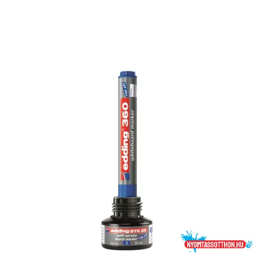 Utántöltő festék Edding boardmarkerekhez kapillárisrendszerre ellátott adagolóüvegben. A markert egyszerűen állítsa csúcsával lefelé az adagolóban. Az Edding comfort 2, 250, 360, 361, 363, 28 boardmarker utántöltéséhez.