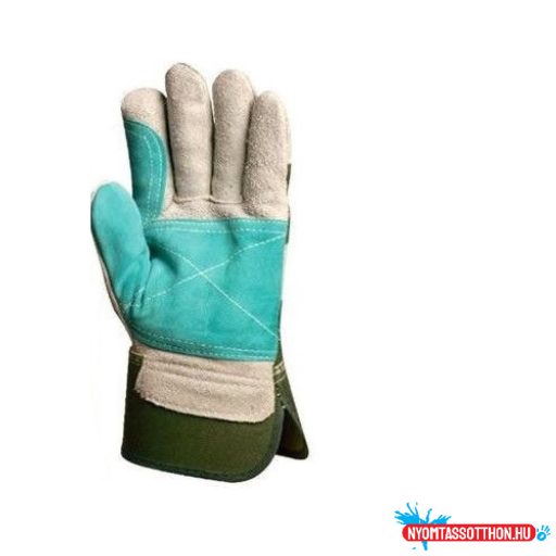 Zöld marhahasíték megerősítés a mutató- és hüvelykujjon, valamint a tenyéren.