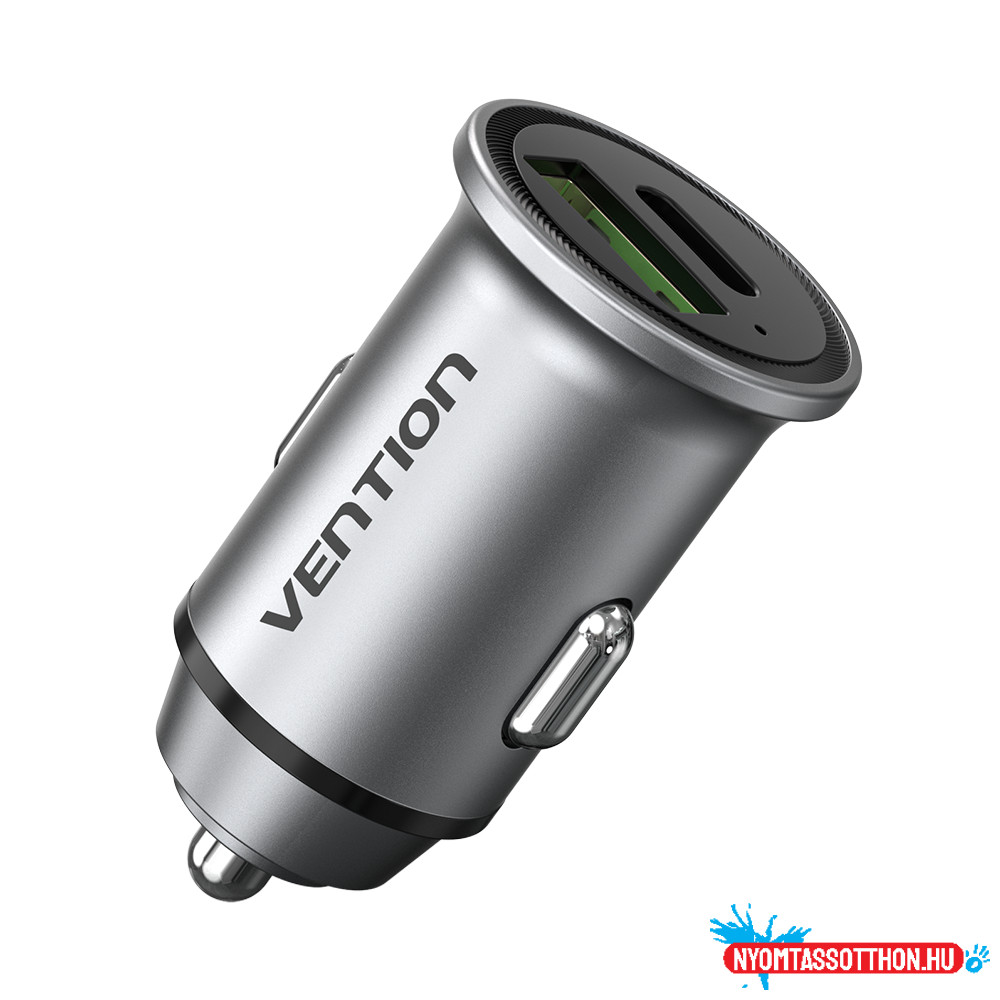 Vention USB-A+C (2port,18/20W, szürke, szivargyújtós), töltő