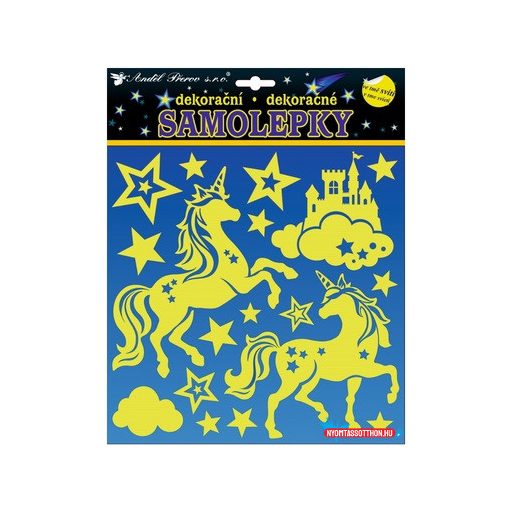 Világítós matrica unikornis, 25x25 cm