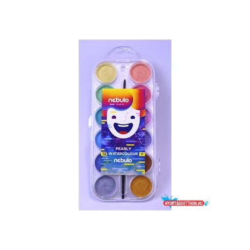 Vízfesték készlet, 12db-os, gyöngyház színű, 30mm festékgombokkal Nebulo