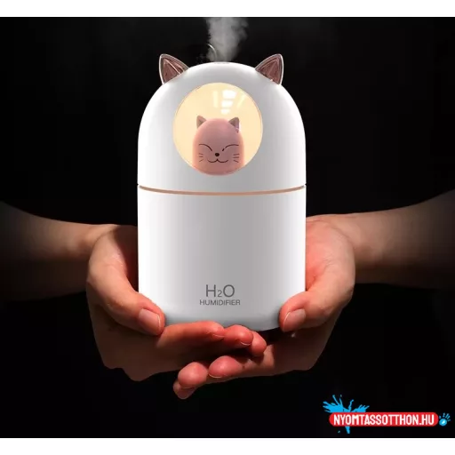 USB-vel működtethető, hordozható 300 ml-es asztali mini párásító. Rendkívül aranyos, LED-es hangulatvilágítással (RGB). A szín nem állítható, ciklikus. Csak desztillált vízzel használható.