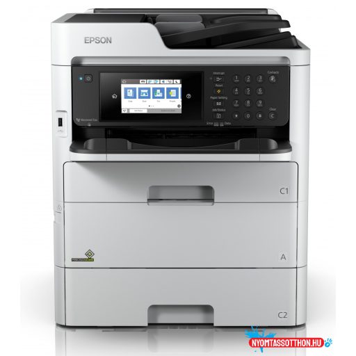 **A/4 Üzleti tintás faxos Wifis Mfp, 24/24 lap/perc ISO sebesség ,Duplex,Hálózat, 4800*1200dpi, 500+250+80 lapos kézi,PCL, Gigabit Ethernet,USB2, Wifi, Wifi Direct,Bluetooth,10,9cm Touch LCD vezérlő *SZÍNES MÁSOLÓ (50 lapos DSDF) *SZÍNES SZKENNER (1200*2400dpi, scan to PC, zoom(25-400%)) *FAX *EGYÉB(Apple AirPrint, Google Cloud Print, Epson Connect (iPrint, Email Print, Remote Print Driver, Scan-to-Cloud, Facebook print) *OPCIONÁLIS 2*500 lapos papírtálca *Kellékek Tinta: (induló:0,5K Bk,C,M,Y ) T01D1 Bk 50K vagy T01D2,3,4 C,M,Y 20K vagy T01C1 Bk 10K vagy T01C2,3,4 C,M,Y 5K és T6716 Maintenance Tank 60k *Terhelhetőség Max:50K/hó ,ajánlott 10K/hó *Max papírsúly: 300g Garancia 12 hónap