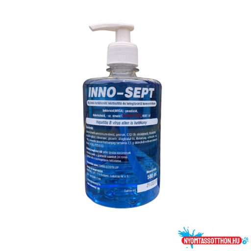 Kézfertőtlenítésre: Felhasználásra kész folyadék foglalkozásszerű felhasználók részére, amely alkalmas minden olyan területen ahol a kéz tisztítása mellett annak fertőtlenítésére is szükség van. Juttassunk 3 ml INNO-SEPT koncentrátumot a száraz, vagy enyhén nedves tenyérbe, és egyenletesen dörzsöljük szét a fertőtlenítendő felületen, majd habosítsuk fel. Ügyeljünk, hogy elegendő mennyiségű anyag jusson a fertőtlenítés szempontjából kritikus helyekre: kézhajlat, ujjak közötti terület, körömágyak, valamint a köröm alatti területek. A kézen alaposan eldörzsöljük és felhabosítjuk a terméket, A behatási idő letelte után a kézről csapvízzel leöblítjük. A nedves kézfelületet meleg levegőáramban szárítsuk meg. (A kéz szárítására–szükség esetén- egyszer használatos papírtörölköző is megfelel).
