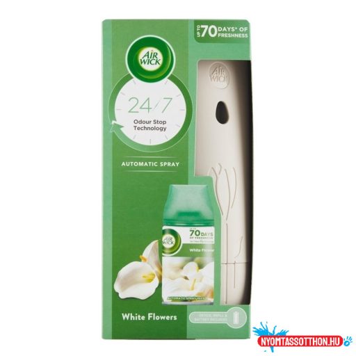 Tdd kellemesebbé a hangulatot az Air Wick Freshmatic Fehér Virág automata légfrissítő frissen vágott fehér virágokra emékeztető illatával. Az Air Wick Freshmatic automata légfrissítő szabályos időközönként juttatja a levegőbe az illatot. Állítsd be a kívánt illaterősséget, és élvezd a Fehér Virág tavaszias illatát otthonodban akár 60* napon át. *a legalacsonyabb illaterősségi fokozaton való használat mellett.